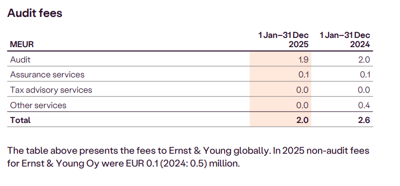 The AGM of Kalmar on 31 March 2026 elected Ernst & Young Oy as Kalmar’s auditor, in accordance with a proposal by the Board of Directors. Kristina Sandin was appointed the principal auditor by Ernst & Young. Auditors’ fees are compensated against an invoice approved by the company.